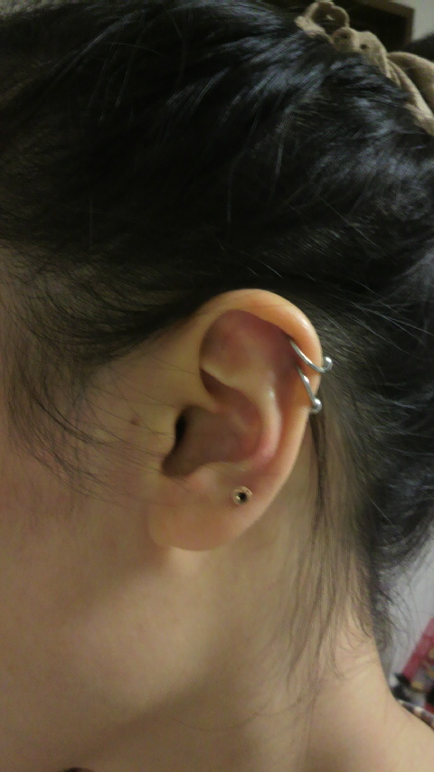 さて、初心者がヘッタクソな手つきでようやくピアス一つつけたわけですが。