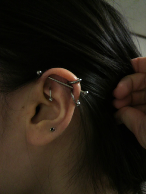 ちなみに、開けるにあたって上のヘリックス(便宜上当ブログではヘリ2と記載)がリングだと都合が悪いとのことなので、最初バーベルに変更。