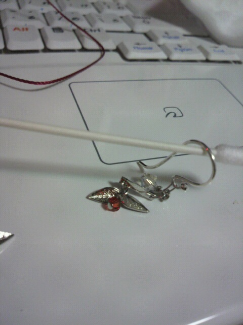 赤系等のビーズを葉っぱのチャームで挟んだらなんかかわゆかった (*´∀`*)