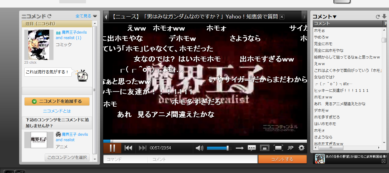 とはいえ、いくつか知ってる漫画やラノベがアニメ化しているそうなので一話くらいは見ようとニコ動を開いてみた訳ですが。。。