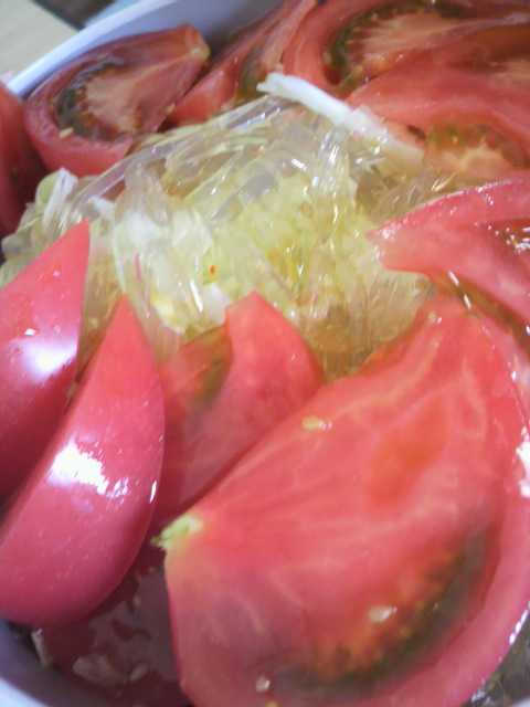 千切り(百切り?)キャベツ+ところてん+トマト。