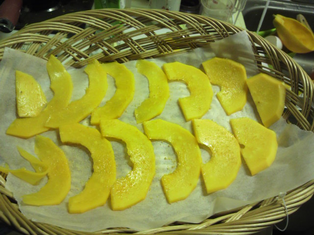 とりあえずそのうちの半分は薄くスライスして、砂糖をまぶして乾燥。