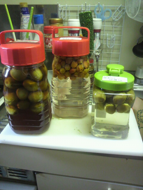 写真だと分からないんですが小梅のやつはほんのりピンクw綺麗な色なんですが、果たして梅酒としてやっていけるか心配だったり。。。